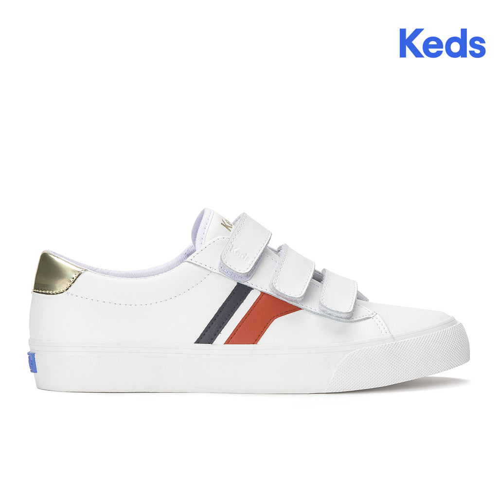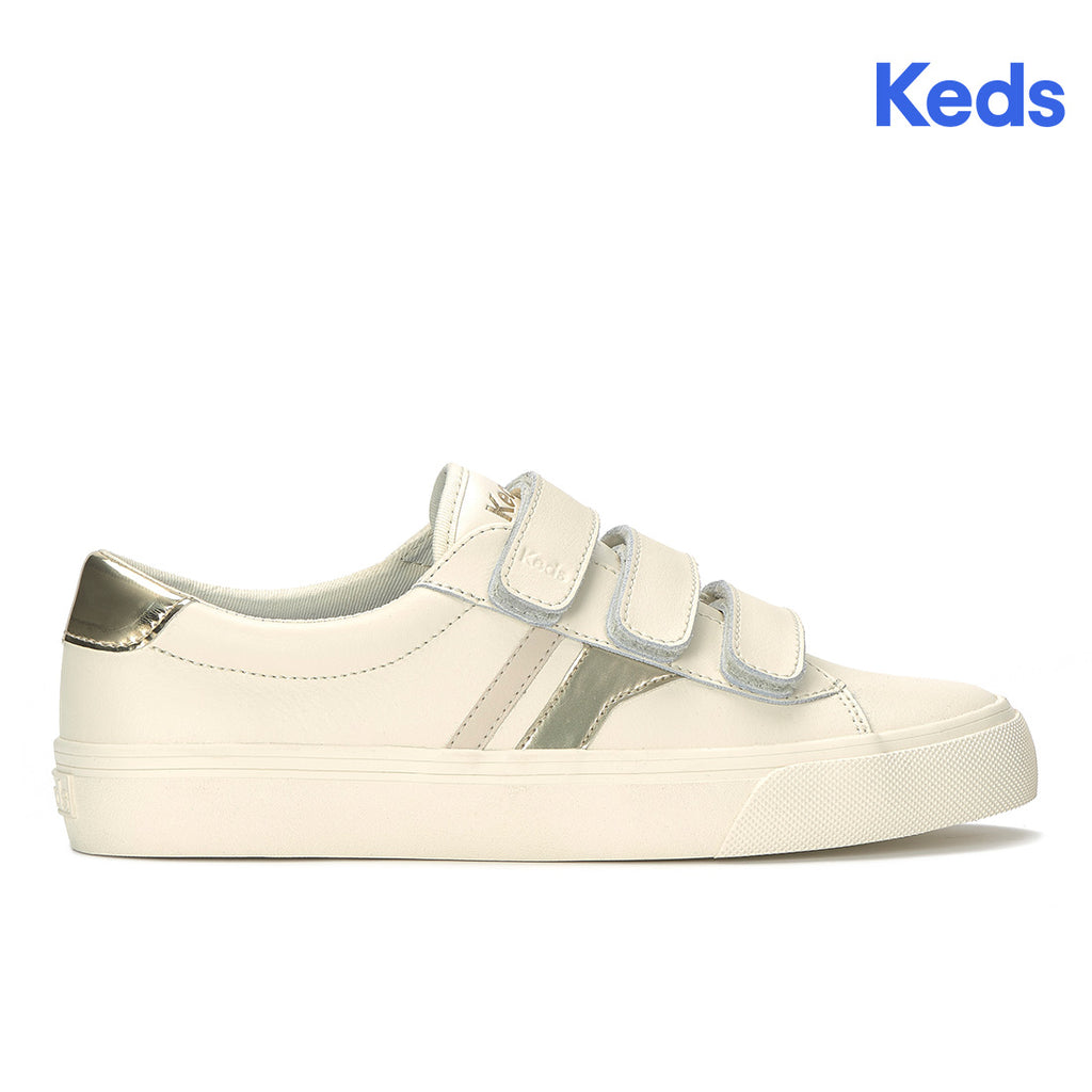 Keds Pursuit Zip Leather Metallic Heel Sneaker Snow White/Gold (WH68526-PRZIP7110)