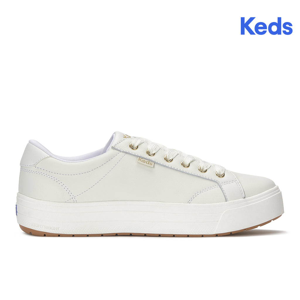 Keds Pursuit Zip Leather Metallic Heel Sneaker Snow White/Gold (WH68526-PRZIP7110)