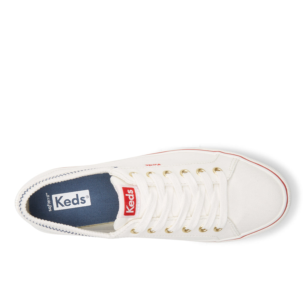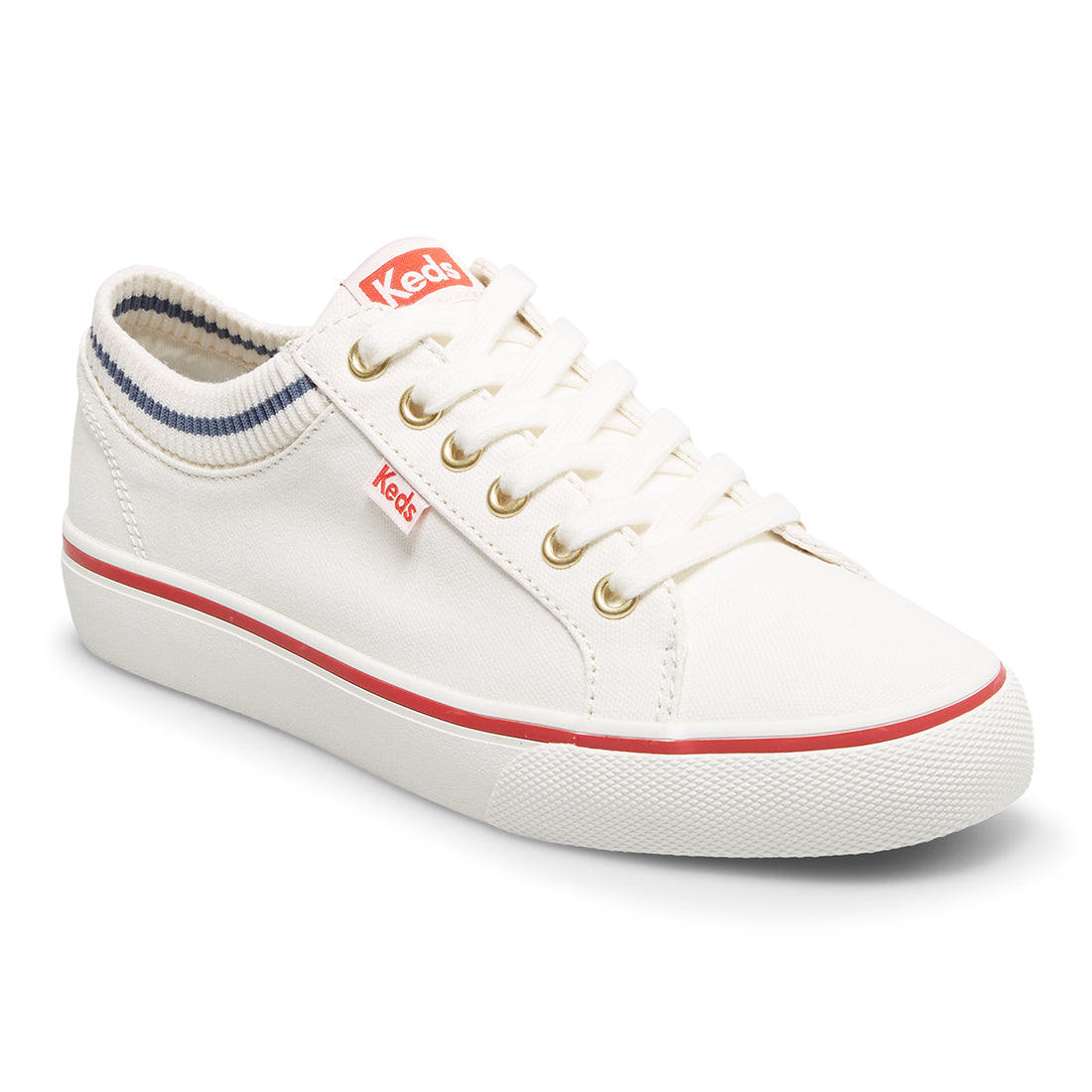 Women's Jump Kick Rib Knit Collar White/Red (WF66428)