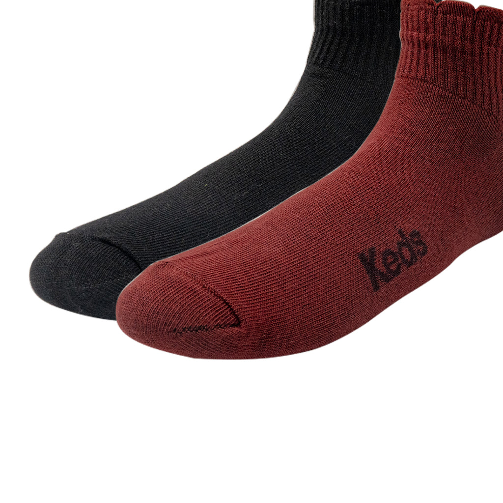 Keds Ribbed Frill Anklet Socks 2PK - Red/ Black (252FWS10)