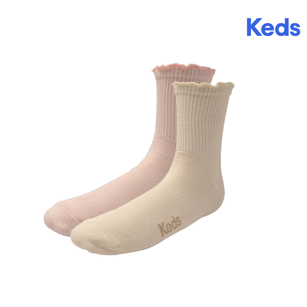Keds Ribbed Frill Anklet Socks 2PK - Pink/ Snow White (252FWS08)