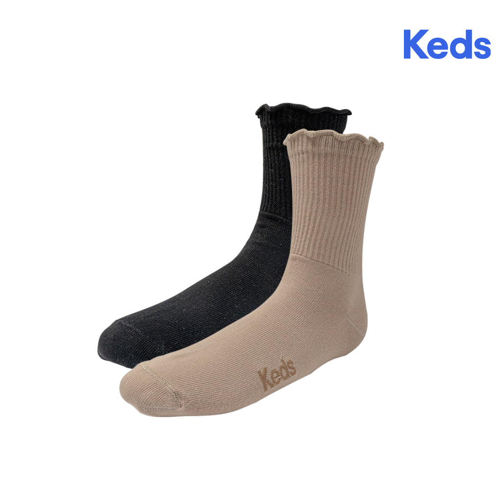 Keds Ribbed Frill Anklet Socks 2PK - Beige/ Black (252FWS09)