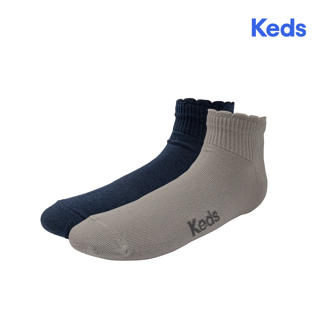 Keds Ribbed Scallop Ankle Socks 2PK - Navy/Grey (252FWS11)