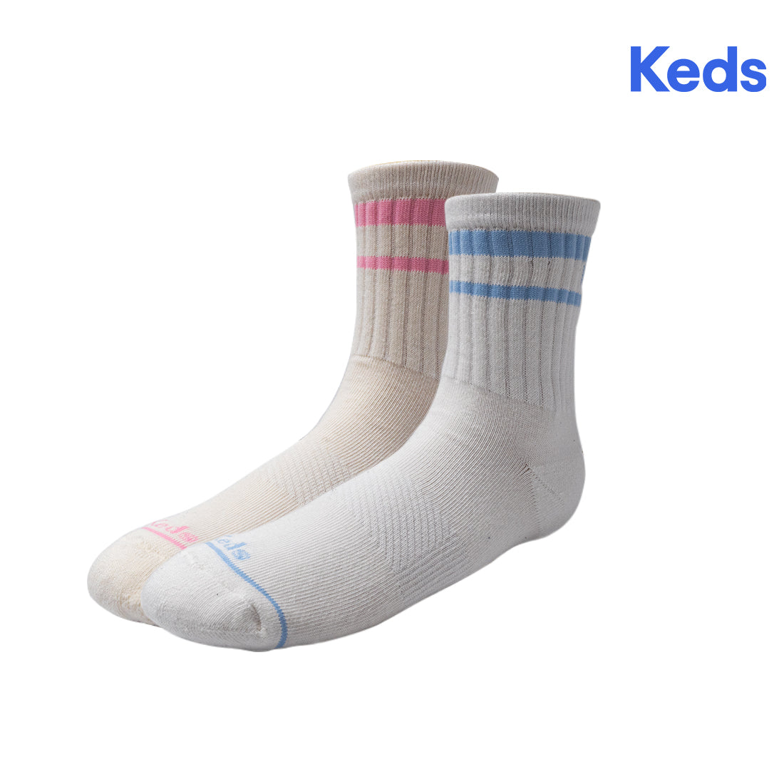 Keds Cushioned Crew Socks 2PK - Snow White/ Blush/ White/ Light Blue (252FWS05)