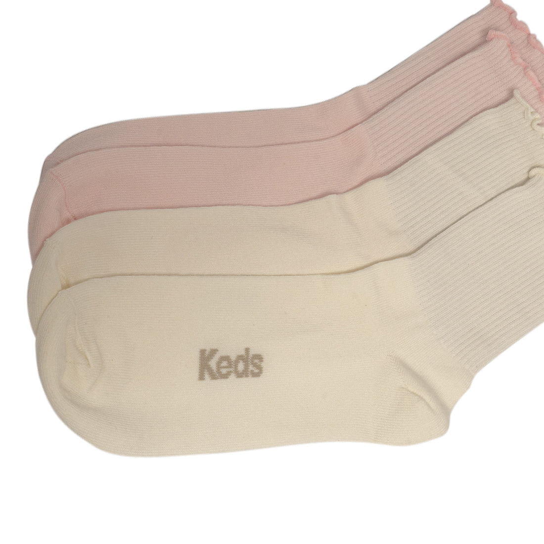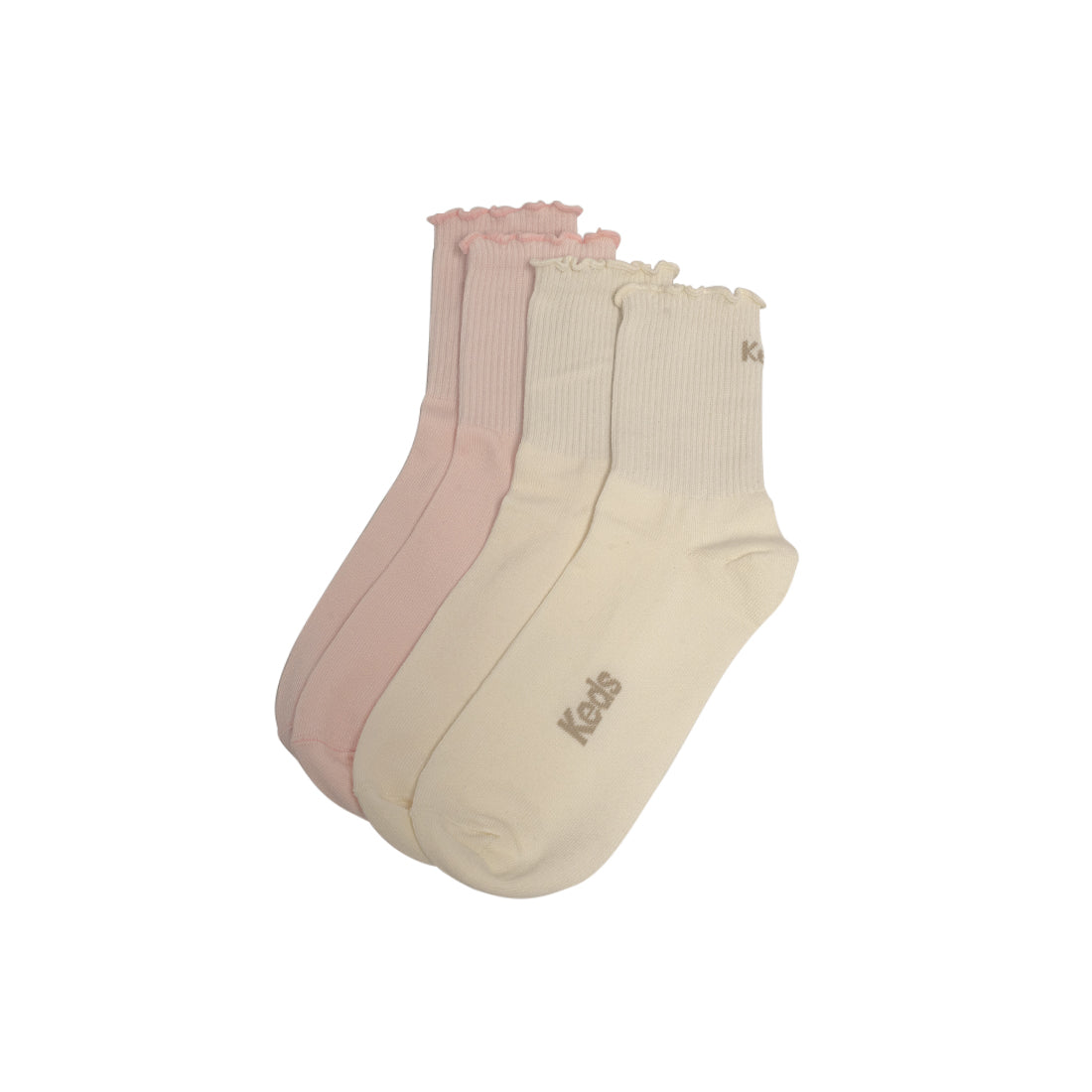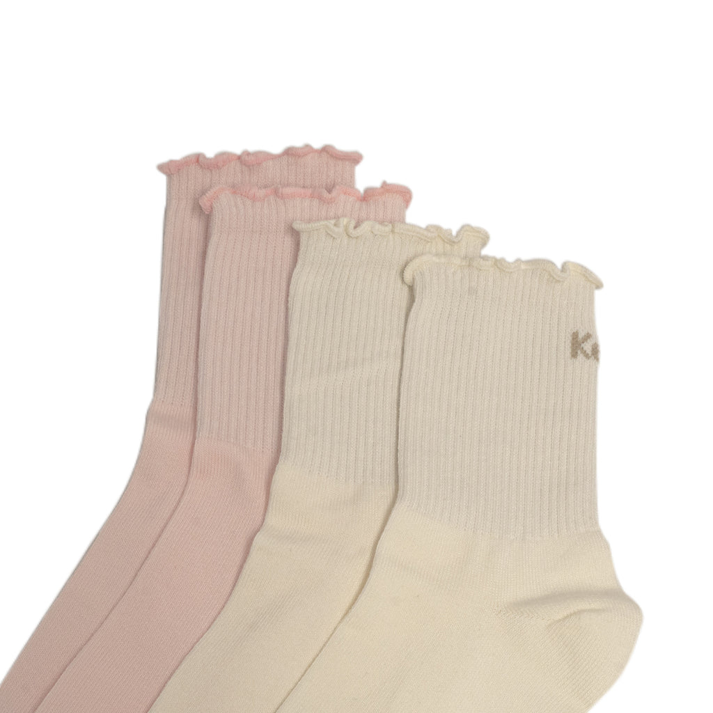 Keds Ribbed Frill Anklet Socks 2PK - Pink/ Snow White (252FWS08) - 5 is backordered and will ship as soon as it is back in stock.
