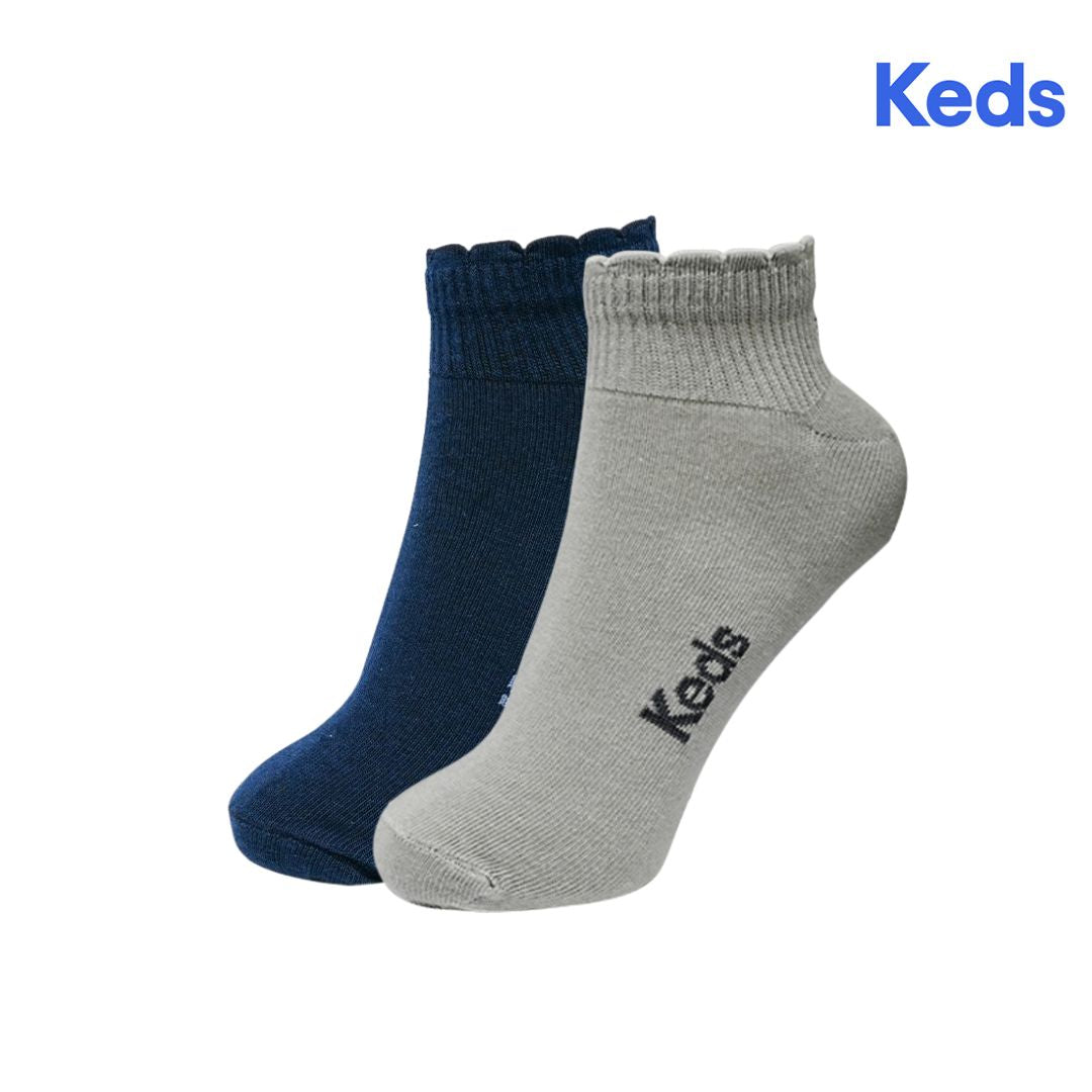 Keds Ribbed Scallop Ankle Socks 2PK - Navy/Grey (252FWS11) - 5 is backordered and will ship as soon as it is back in stock.